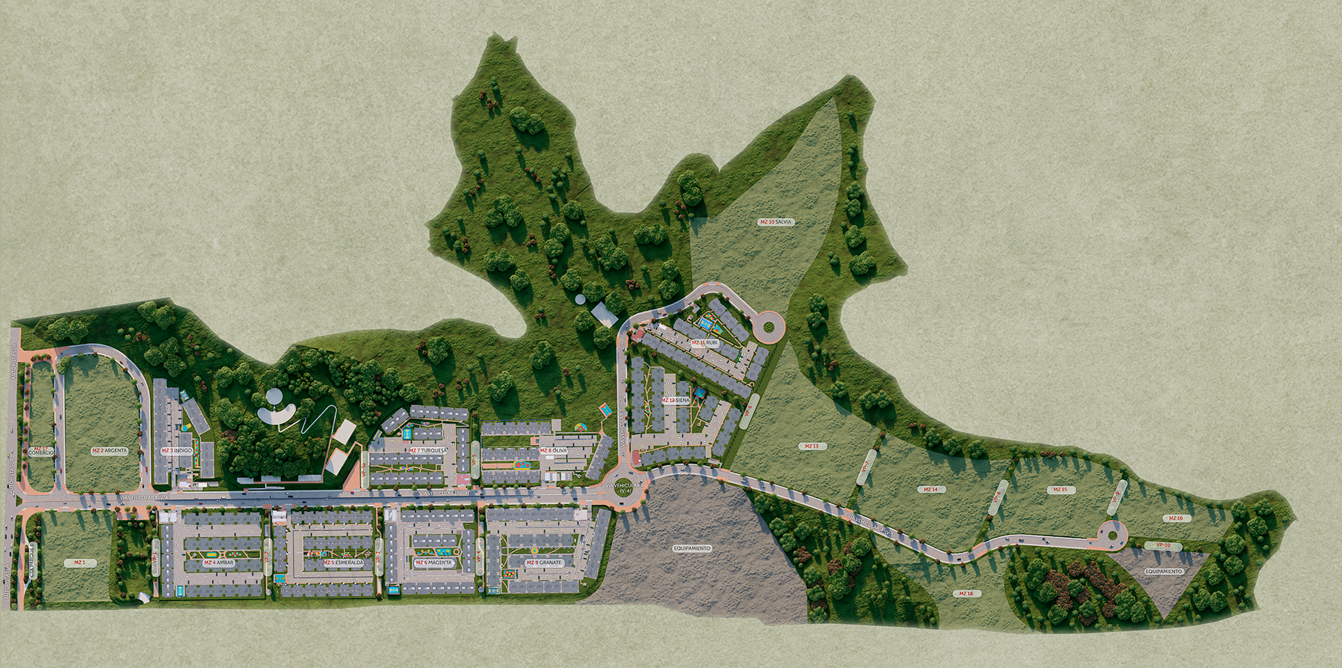 Zonas verdes ambientales y parques.